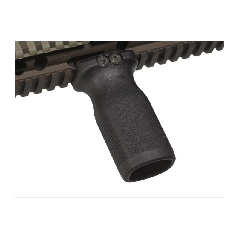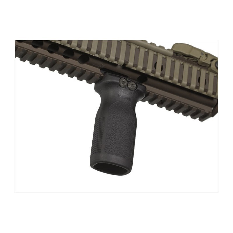 La poignée verticale avec grip RVG rail Magpul en polymère renforcé est conçue pour être fine et robuste. Sa texture antidérapante permet une meilleure prise de l'arme et ainsi d'améliorer sa maniabilité. Celle-ci ce monte facilement sur le rail d'une arme.