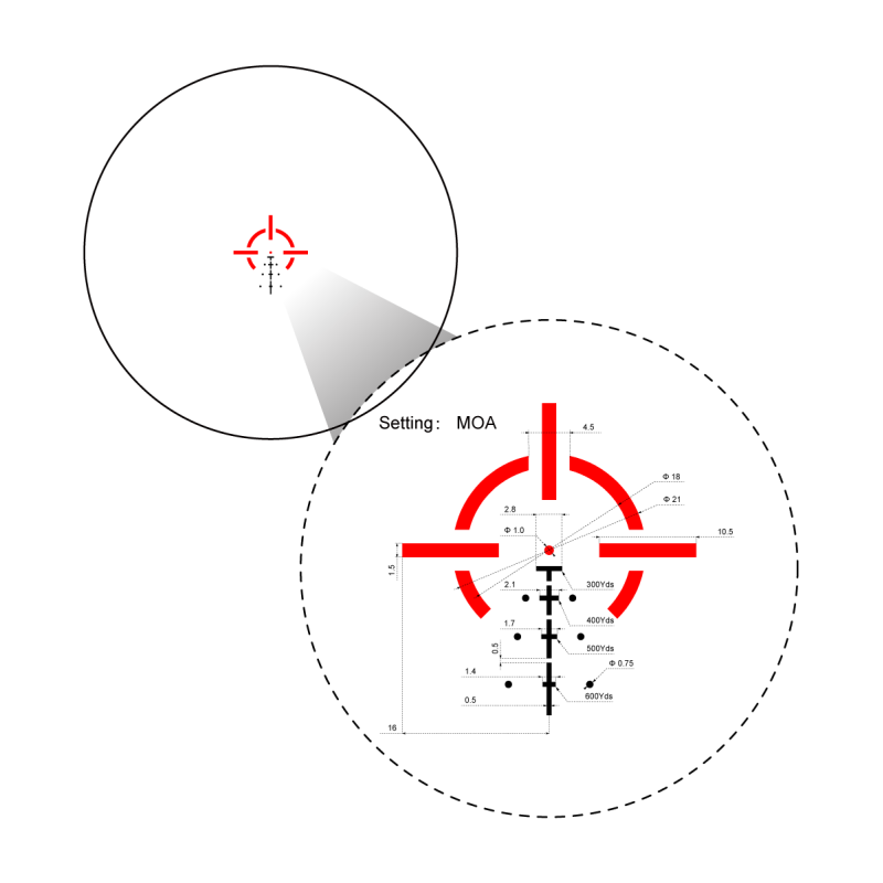 Avec son objectif 18 mm, le Paragon propose un équilibre optimal entre taille réduite et efficacité visuelle. Il permet une visée confortable et une bonne luminosité dans la plupart des conditions de tir.