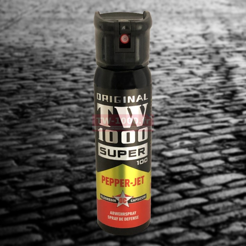 Bombe lacrymogène TW 1000 "SUPER 100" au Pepper-Jet liquide en 100 ml pour l'auto-défense.