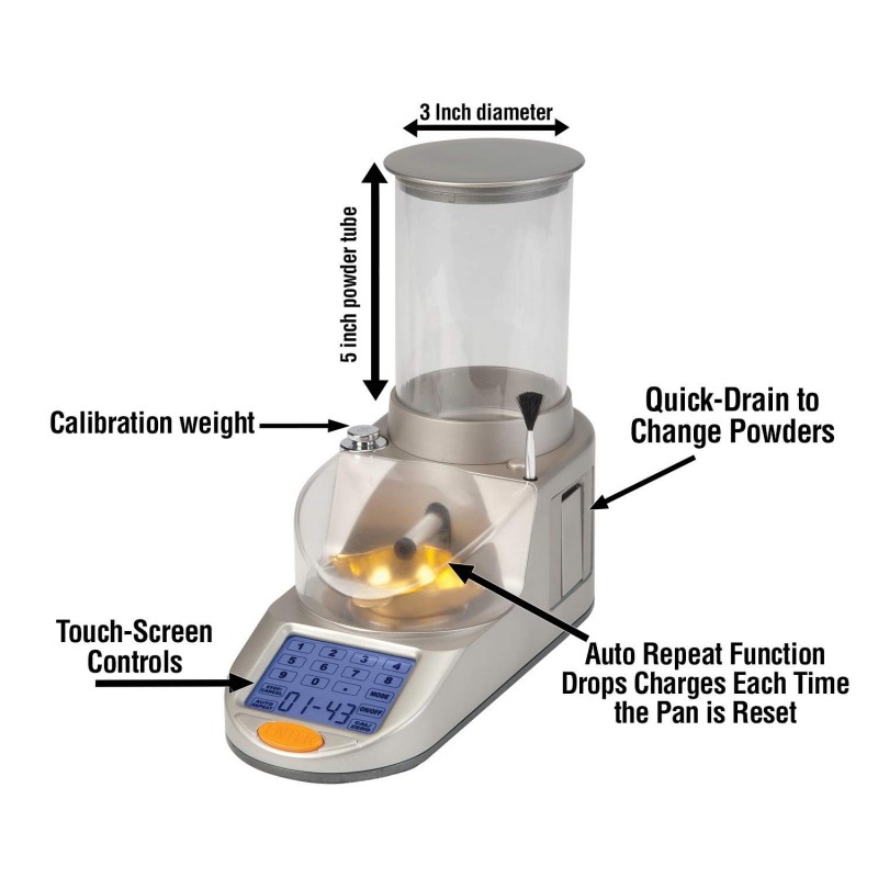 Balance Doseuse électronique tout en un seul. Encombrement réduit. Système de dosage de poudre automatique permettant de doser rapidement et précisément vos charges.