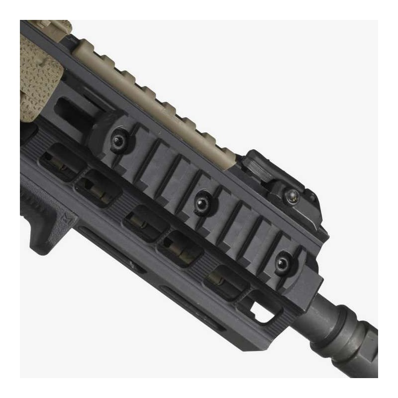 Cette section de rail Picatinny en polymère léger avec 9 slots est conçu pour être utilisé avec les garde-mains M-LOK® pour permettre la fixation de différents accessoires tel que les lampes, les poignées verticales, etc...