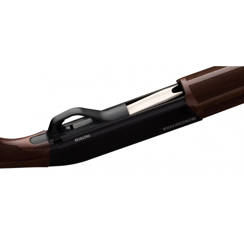 Fusil semi-automatique de calibre 12/76 à crosse bois, intégrant de nombreuses innovations pour un cycle de tir et une montée à l'épaule plus rapides.