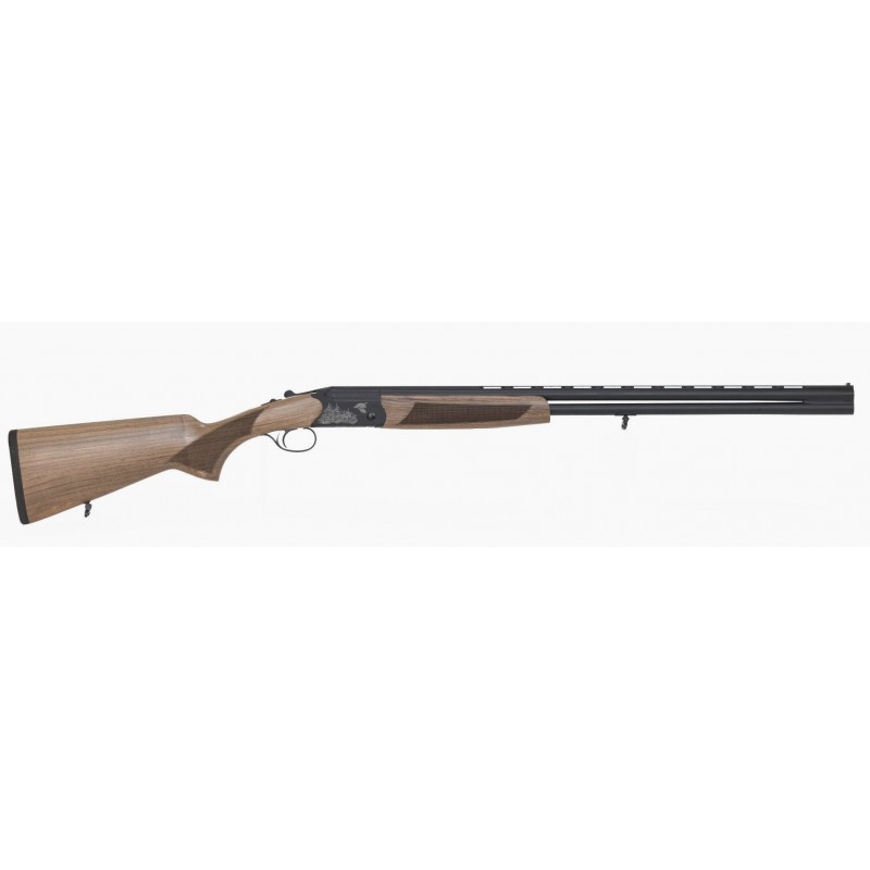 Une belle pièce qui allie modernité et savoir faire artisanal avec une bascule noire monobloc forgé et orné de belles gravures et du sigle de la marque de couleur argenté, une crosse poignée pistolet, quadrillée et longuesse en bois de noyer noble, disposant d'un canon de 71cm en acier, avec 5 chokes interchangeables (plein, cylindrique, 1/2, 3/4, 4/4) une mono détente sélective.