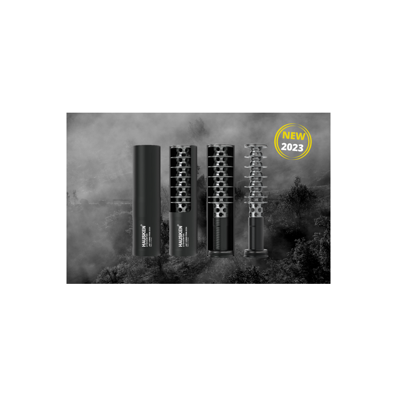 Avec un diamètre de 50 mm, il permet une répartition efficace des gaz à l'intérieur, offrant ainsi une réduction équilibrée de la pression acoustique d'environ -30 dB. De plus, la carabine conserve une précision et une maniabilité optimales, avec seulement 140 mm d'allongement du canon grâce à la construction éprouvée HAUSKEN Over-Barrel.