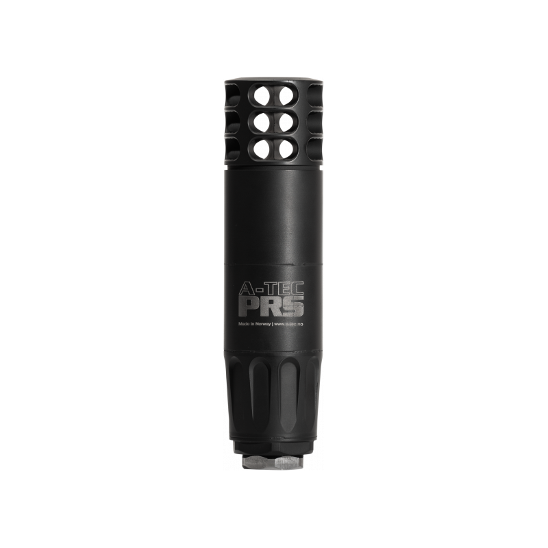 A-TEC PRS est un silencieux/frein de bouche hybride qui combine les avantages d'un silencieux complet avec un frein de bouche dans une solution compacte. Toute la construction en acier inoxydable et le traitement de surface en cerakote garantissent qu'il peut supporter une utilisation difficile dans toutes les conditions.