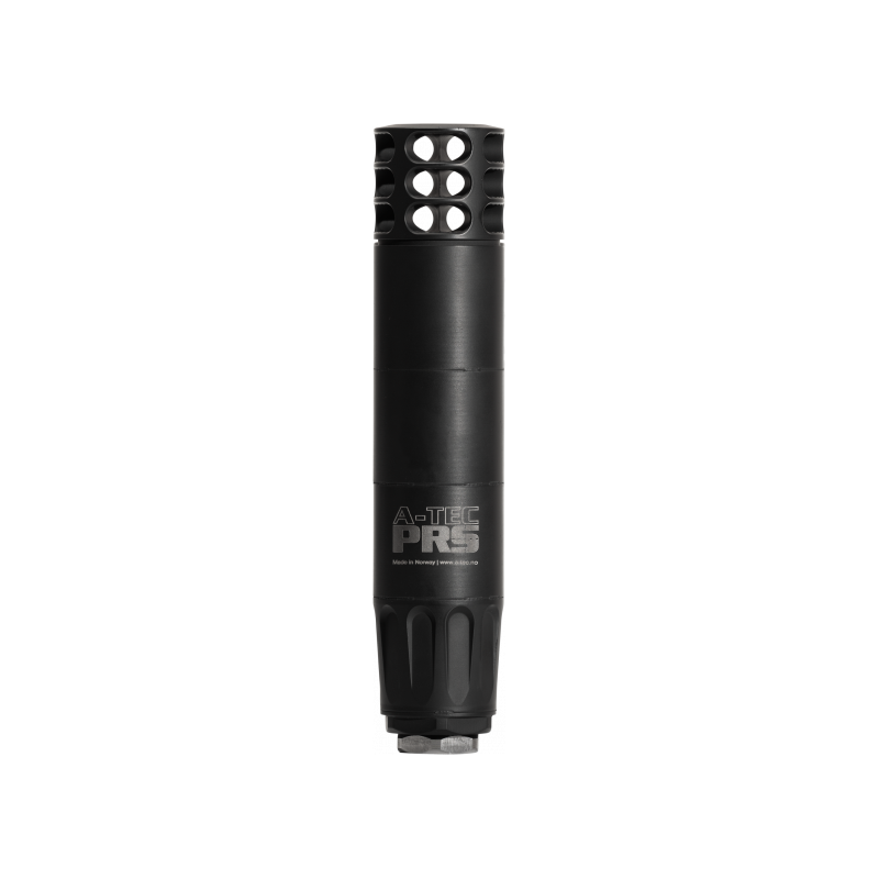 A-TEC PRS est un silencieux/frein de bouche hybride qui combine les avantages d'un silencieux complet avec un frein de bouche dans une solution compacte. Toute la construction en acier inoxydable et le traitement de surface en cerakote garantissent qu'il peut supporter une utilisation difficile dans toutes les conditions.