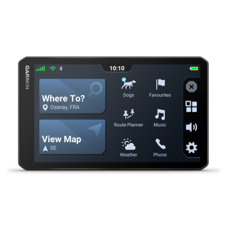 Suivez et sécurisez vos chiens avec Garmin DriveTrack™ 72, le système de suivi embarqué avec navigation GPS sur route et hors route. Surveillez jusqu'à 20 chiens lorsque vous couplez l'appareil à votre système de suivi de chiens Garmin compatible. Cartographie intégrée avec images satellite actualisées sur l'écran tactile 7 ″ haute résolution et facile à lire. Couplez votre appareil avec l'application mobile Garmin Drive pour afficher les conditions météo actuelles, les Smart Notifications et l'état du trafic.
